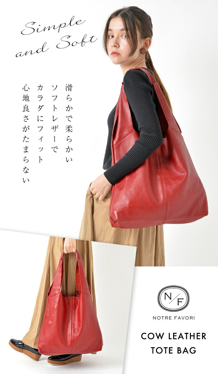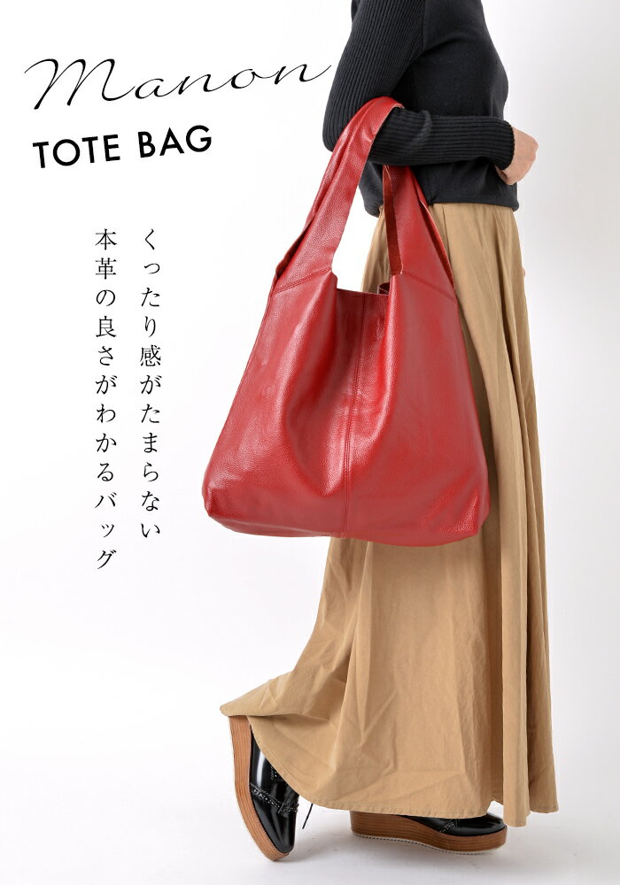 大人の深紅色【くったり感がたまらない!】 本革 トートバッグ レディース 【マノン】 バッグ 大きめ 柔らかい 革 一泊旅行 A4 通勤 軽い 軽量 肩掛け レザー 赤 還暦祝い(Dチェリー
